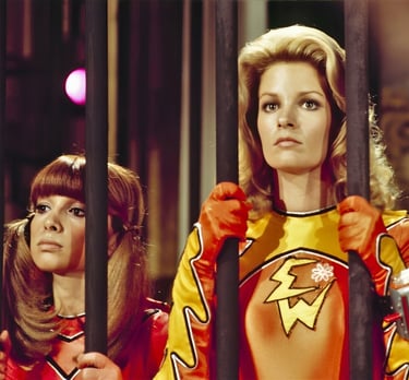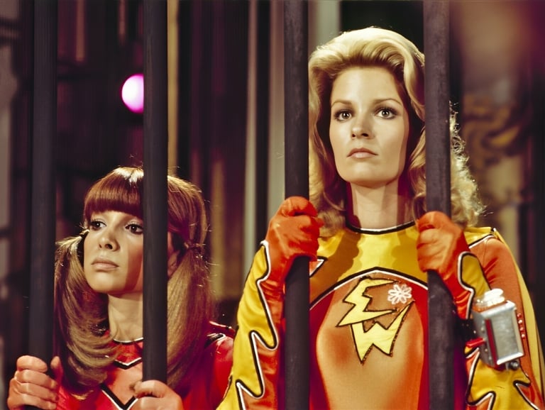 Foi dentro desse estilo que surgiu Electra Woman e Dyna Girl, claramente influenciada pelo impacto visual que Batman havia deixado alguns anos antes na TV americana. A série apostava em vilões caricatos, ação em ritmo acelerado, truques visuais simples e um universo em que o exagero funcionava como parte do charme.