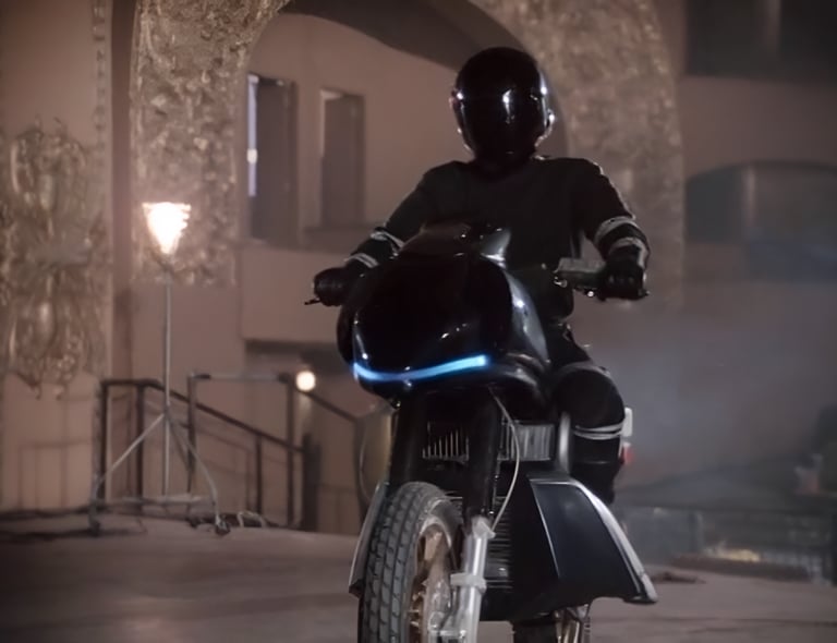 Mas a máquina ia além da velocidade. A moto contava com metralhadoras frontais, mísseis teleguiados, laser, blindagem reforçada, computador de bordo, comunicação bidirecional, visão noturna, scanners e outros gadgets que a transformavam em uma arma quase imbatível. Era o retrato perfeito da fantasia tecnológica que dominava parte da TV oitentista.